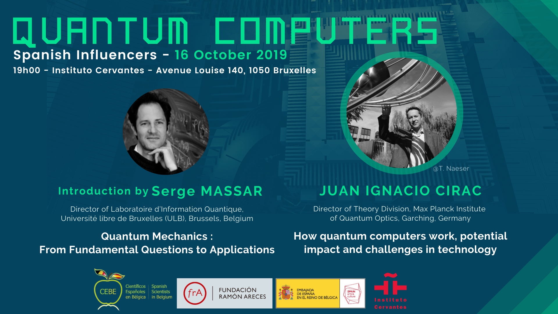 Otro año más continuamos con el ciclo “Spanish Influencers” que tiene como finalidad dar a conocer la ciencia desarrollada por españoles, siendo un ejemplo de motivación e inspiración para científicos internacionales asentados en Bélgica. Este año contamos con la participación de Ignacio Cirac, reconocido físico cuya investigación se centra en la teoría cuántica de la información. Gracias a sus estudios, Ignacio ha desarrollado un sistema de computación basado en la mecánica cuántica, motivo por el cual ha recibido varios premios y galardones.