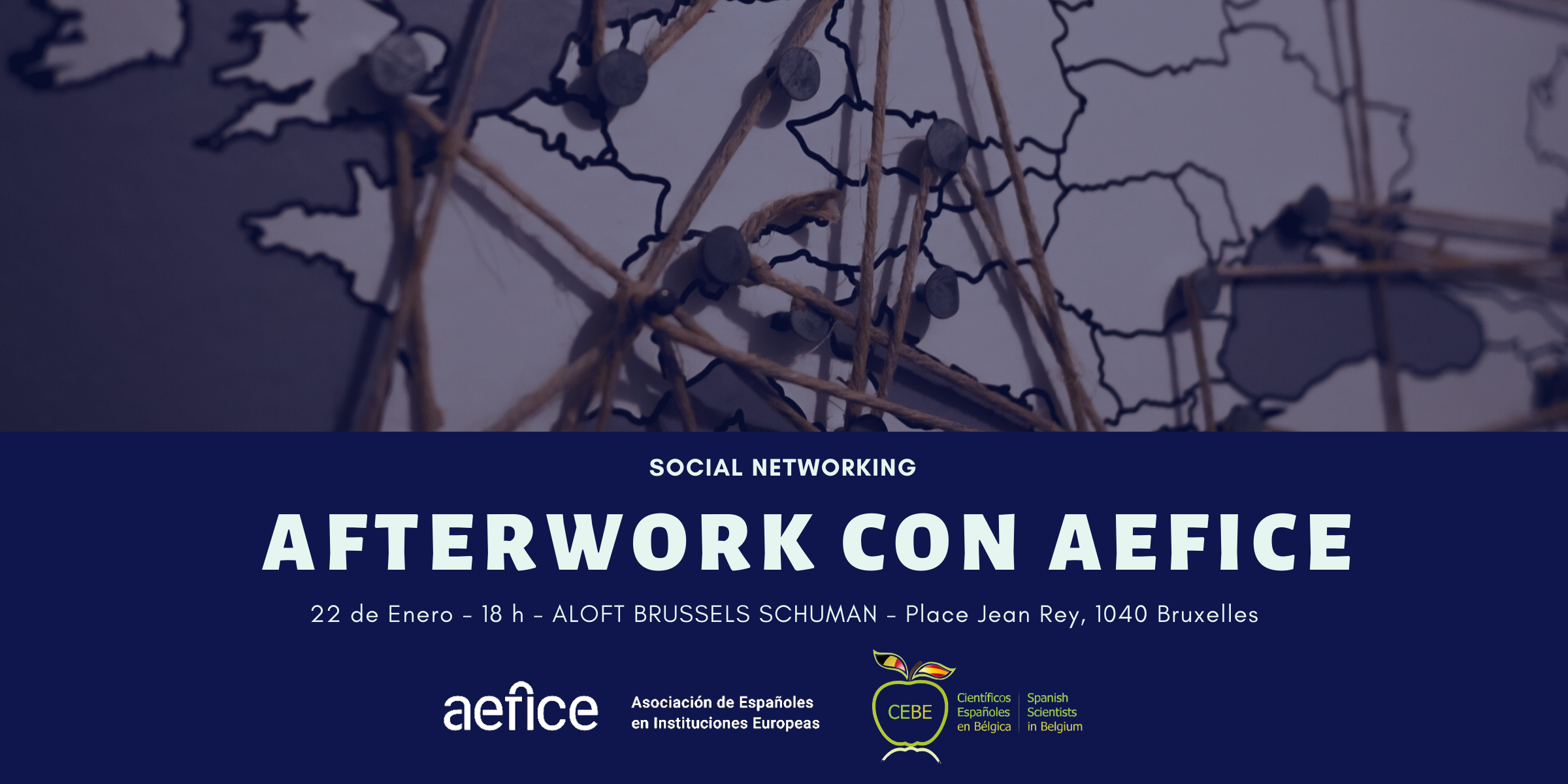 La asociación de Científicos Españoles en Bélgica (CEBE), en colaboración con la Asociación de Españoles en las Instituciones Europeas (AEFICE), este mes te presentan un evento de social netwotking. ¿Aún no conoces a CEBE? ¿Sabías que hay muchos españoles trabajando en las Instituciones Europeas, tanto en materia científica como en otras muchas? ¡Ven a conocer a los miembros y juntas directivas de AEFICE y CEBE!. El evento tendrá lugar en el hotel Aloft de Bruselas a las 18:00h. Sigue nuestras redes sociales para más info.